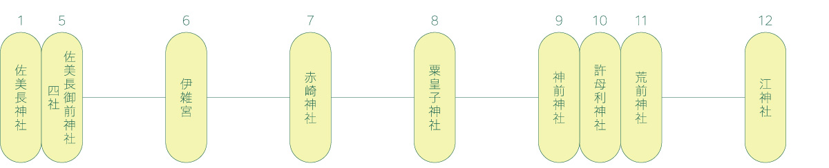 この125社は伊勢市を中心とする4市2郡にわたって分布しています。神社は、海辺、川のほとり、田園の中、森の中など多様な場所に建立されています。美しい日本の原風景を今に伝え、四季折々の多彩で豊かな表情がわたしたちを迎えてくれます。