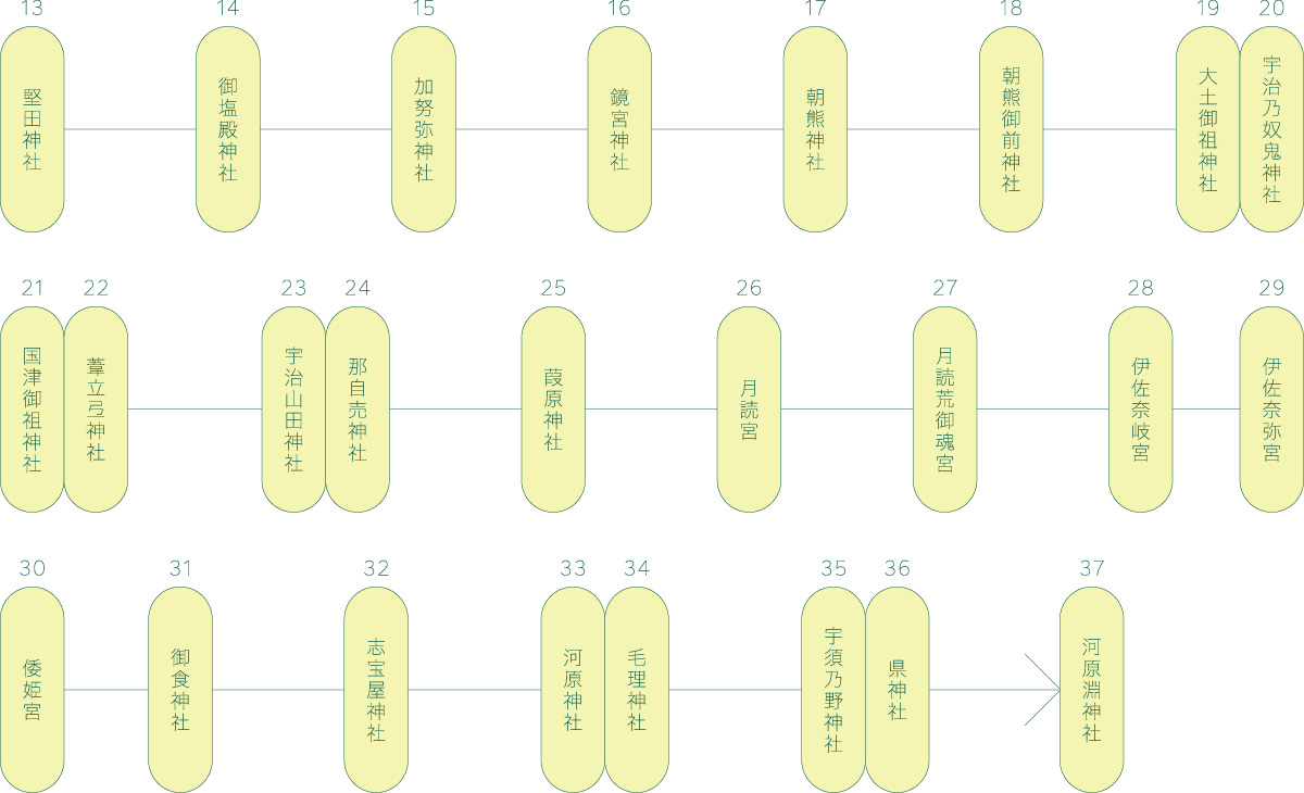 ※外宮の御酒殿や上御井神社など一般参拝できない社もあります。最寄の参拝可能なところから遥拝お願いします。