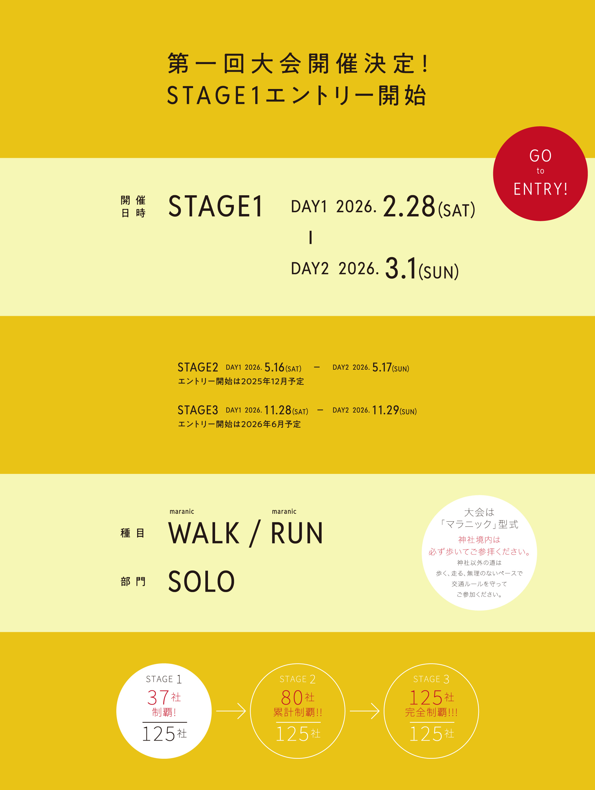 1年間で3つのステージを完歩するもよし、数年かけて3つのステージを完歩するもよし。毎年125社めぐりに参加するはさらによし。ご自身のご都合やお好みに合わせてご自由に参加ください。