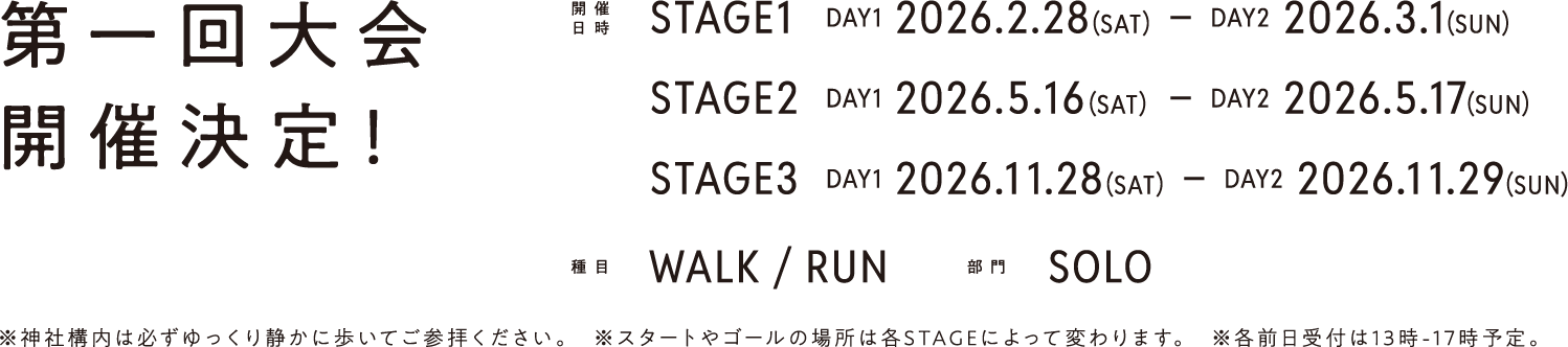 ただし、各神社境内は必ずゆっくり静かに歩いてご参拝お願いします。